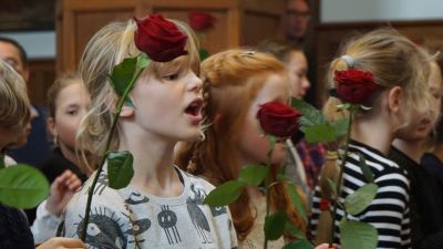 Het Koninklijk Haarlems Mannenkoor Zang en Vriendschap en het Haarlems Kinderkoor zongen samen het lied “Flame of Fire”